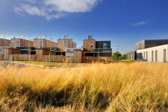 Le principe retenu consiste à regrouper le maximum de logements : 14 sont orientés suivant un axe Nord/Sud. Ainsi guidé par l’air et la lumière, le bâtiment se plie aux exigences d’une conception bioclimatique. Les 6 autres logements orientés Est/Ouest se regroupent sur les deux autres volumes retournés en équerre. Ils respectent les alignements imposés par le schéma d’aménagement urbain sur la route du Chemin Vert.